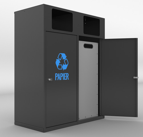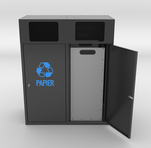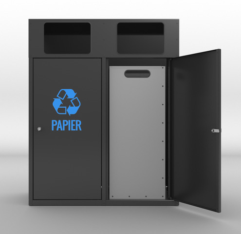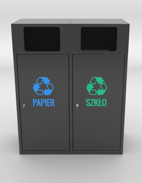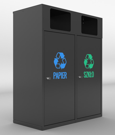 Komora wyposażona jest w ocynkowany wkład 120 l, a otwory wrzutowe oraz uchwyty zabezpieczono osłonami ostrych krawędzi.