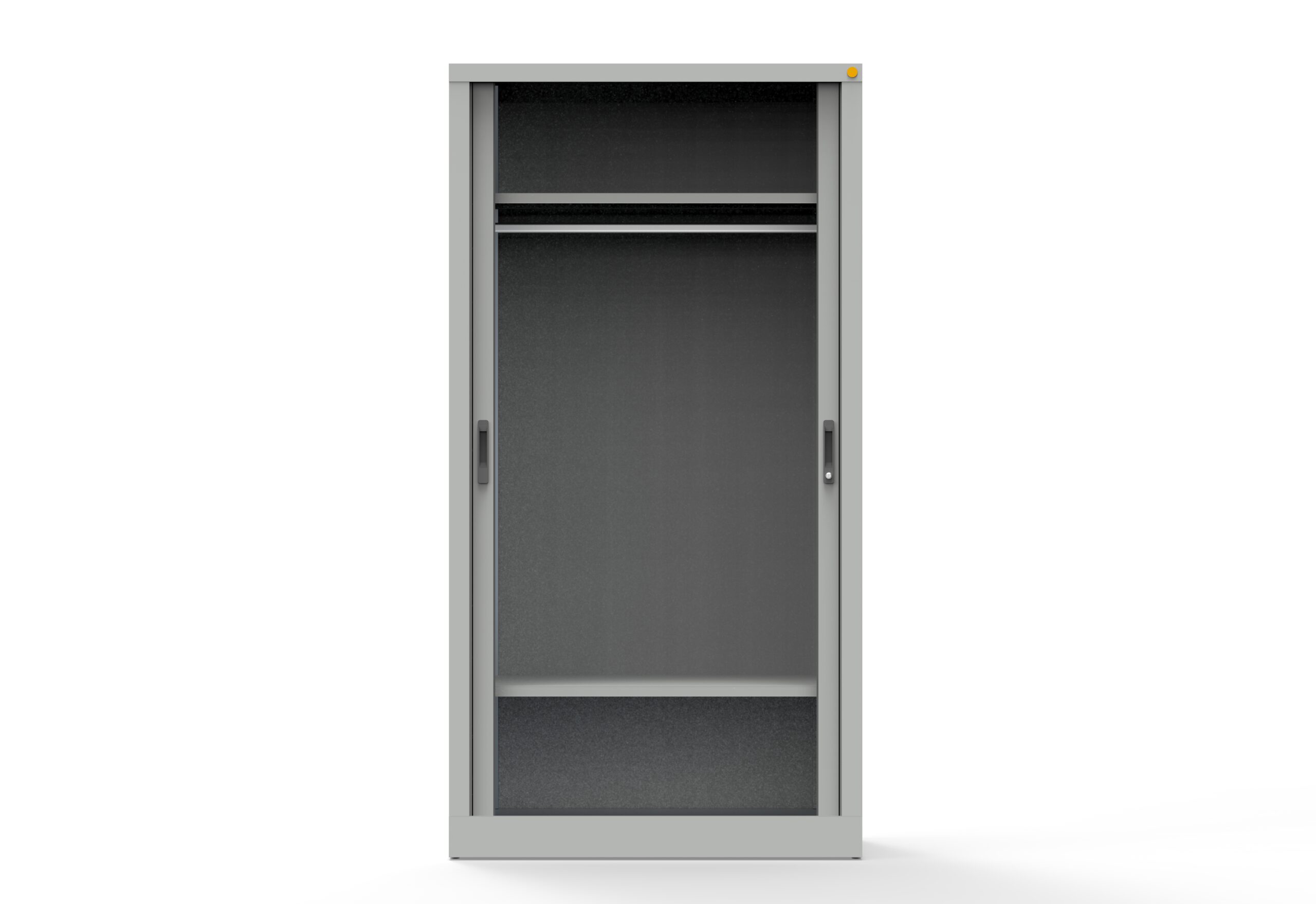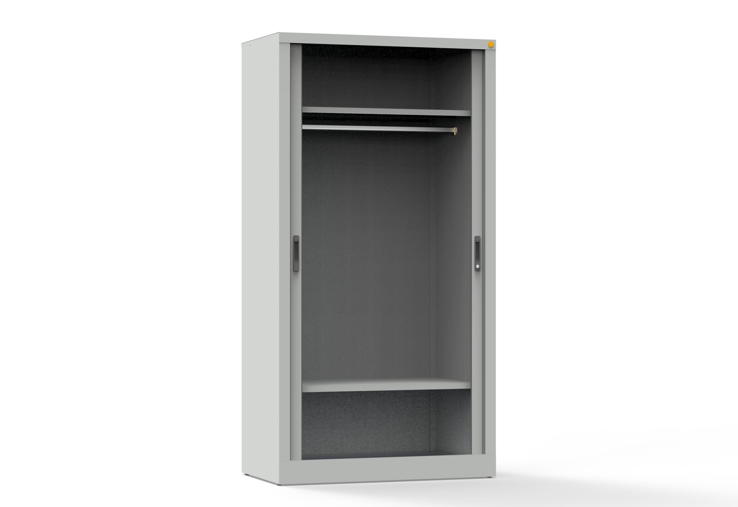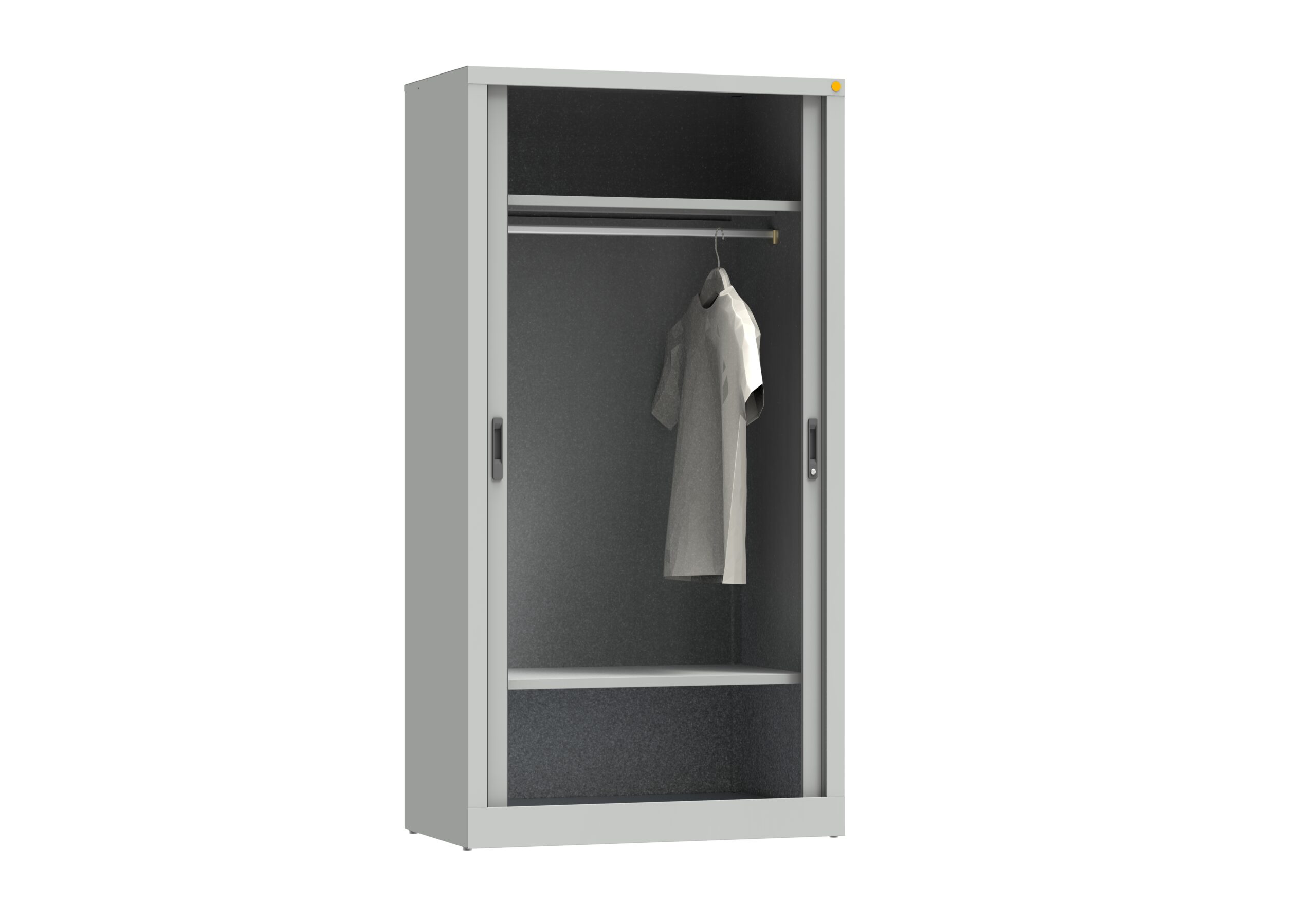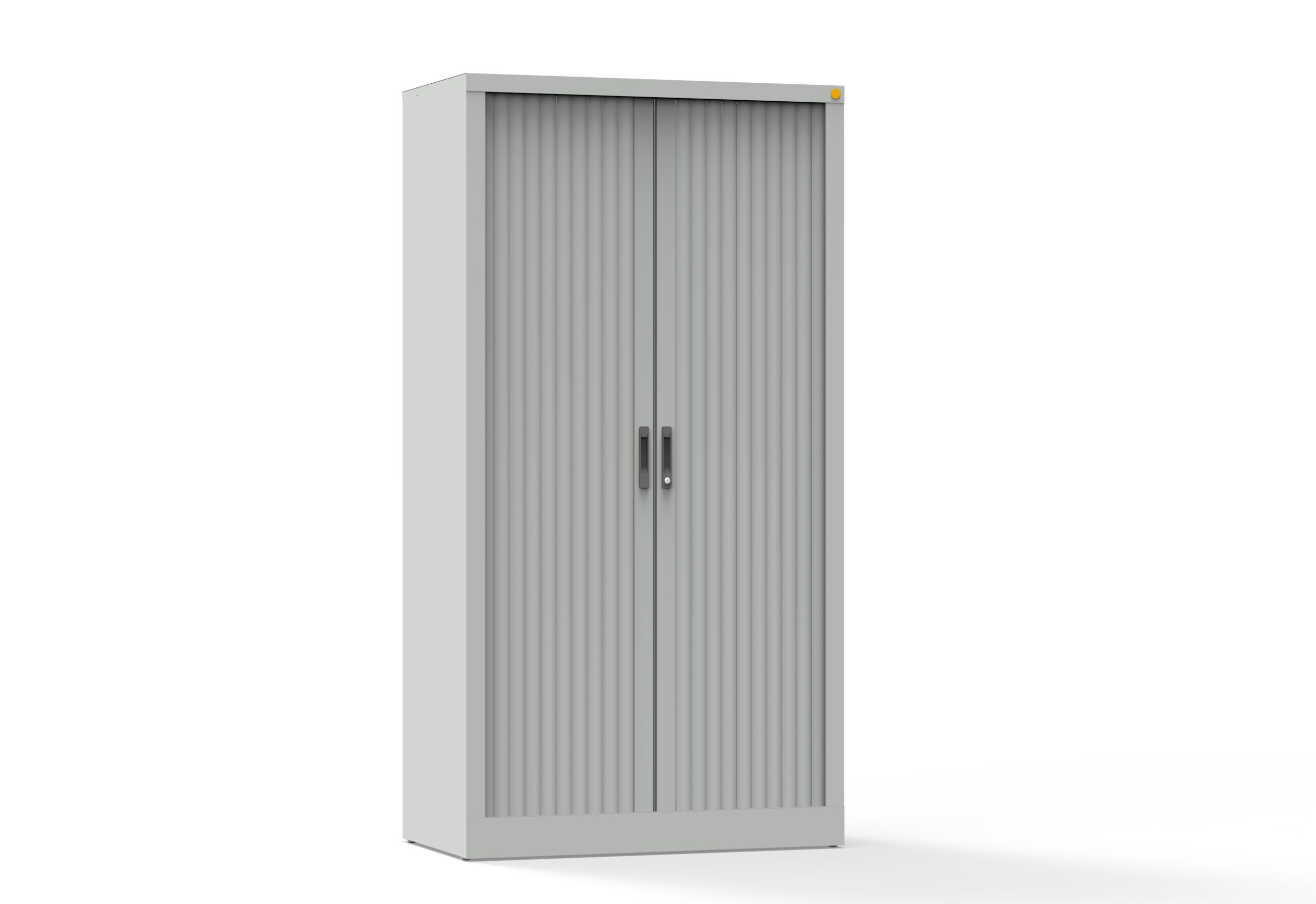 Szafa ubraniowa wyposażona w system drzwi żaluzjowych znajduje zastosowanie w pomieszczeniach o ograniczonej przestrzeni, gdzie nie ma miejsca na otwieranie drzwi skrzydłowych. Drzwi wykonane są z tworzywa sztucznego. Wewnątrz znajduje się górna półka, drążek na wieszaki oraz dolna półka. Korpus wykonany jest z blachy czarnej o grubości 0.8–1 mm, malowany farbami proszkowymi (epoksydowo-poliestrowymi) w kolorze RAL 7035. Szafa zamykana zamkiem krzywkowym. Udźwig półki: 50 kg.